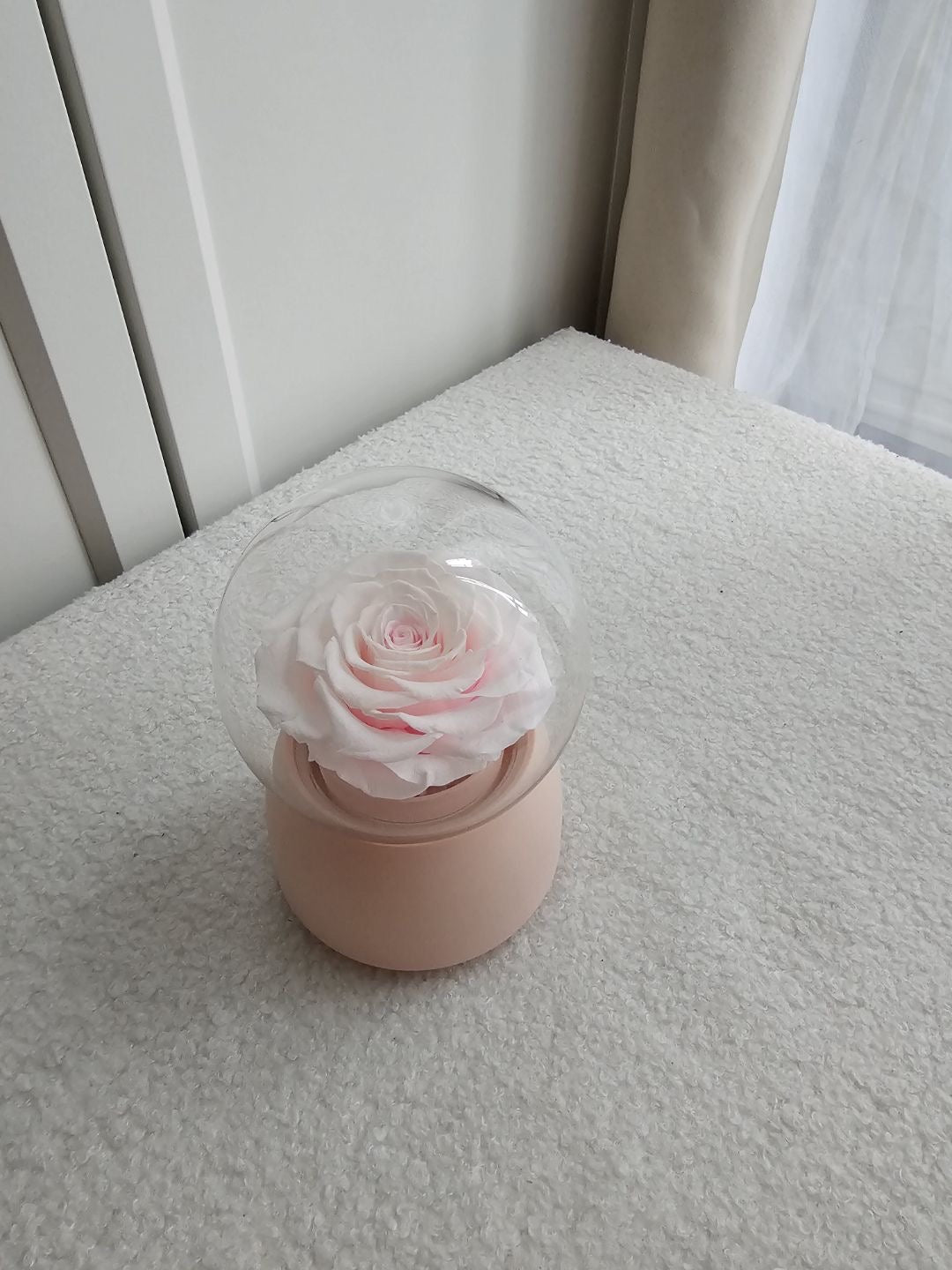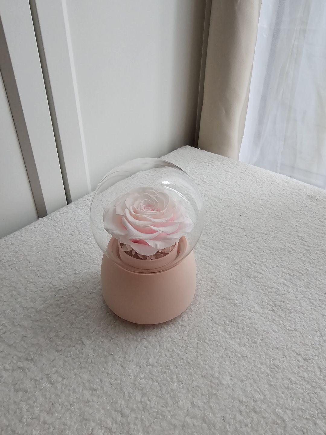 - Design raffiné : Un dôme en verre transparent protège la rose, reposant sur une base solide et élégante, parfaite pour décorer n'importe quelle pièce.